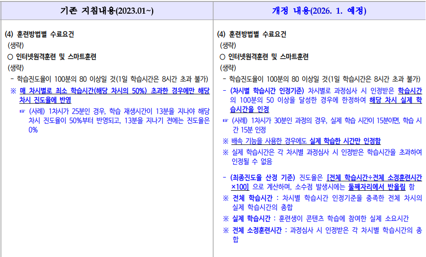 [학습안내] 사업주 직업능력개발훈련 업무처리지침 개정 예정 사항 안내(개정내용 2026.1 예정)